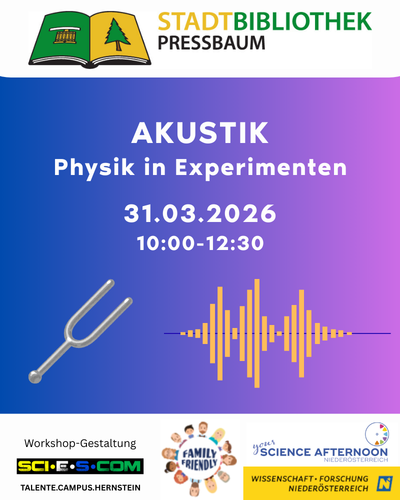Doch was genau ist eigentlich Schall? Wie bewegen sich Töne von einem Instrument oder Lautsprecher zu unseren Ohren, und wovon hängt es eigentlich ab, wie etwas klingt? Mit diesen Fragen rund um die Akustik beschäftigen wir uns in diesem Workshop durch viele spannende und wohlklingende Experimente.[sci-e-s.com]